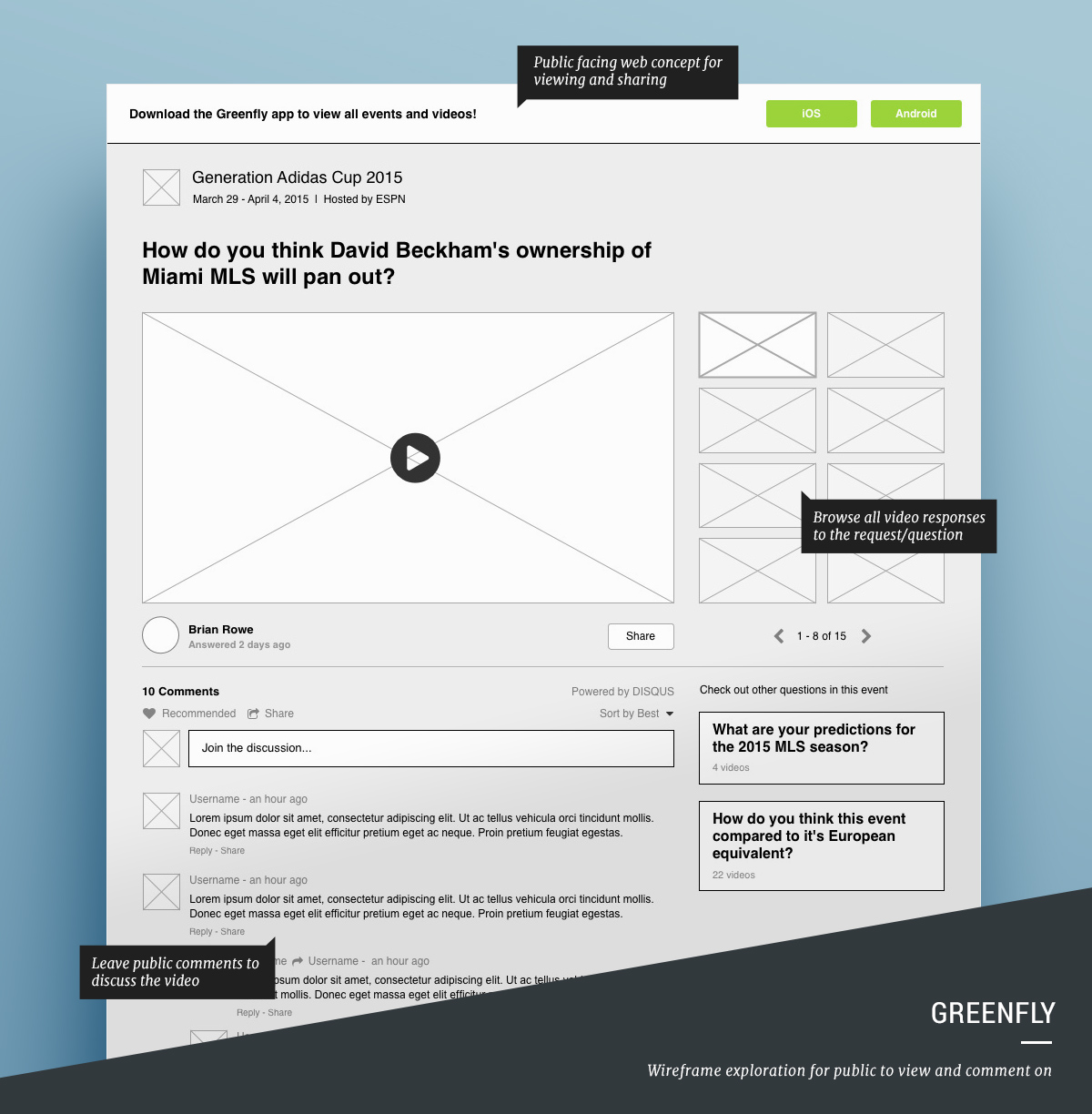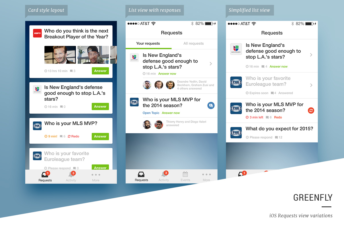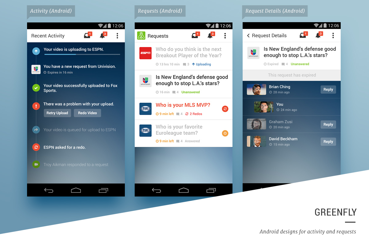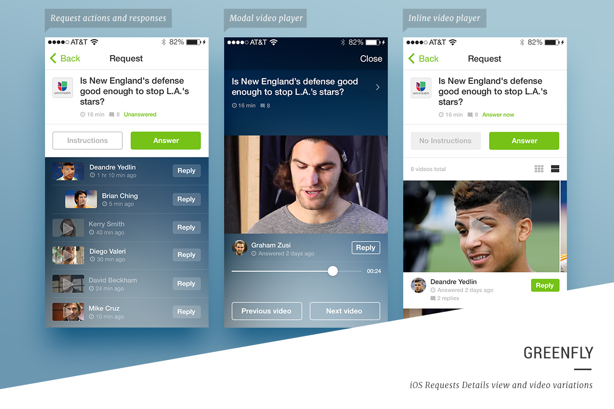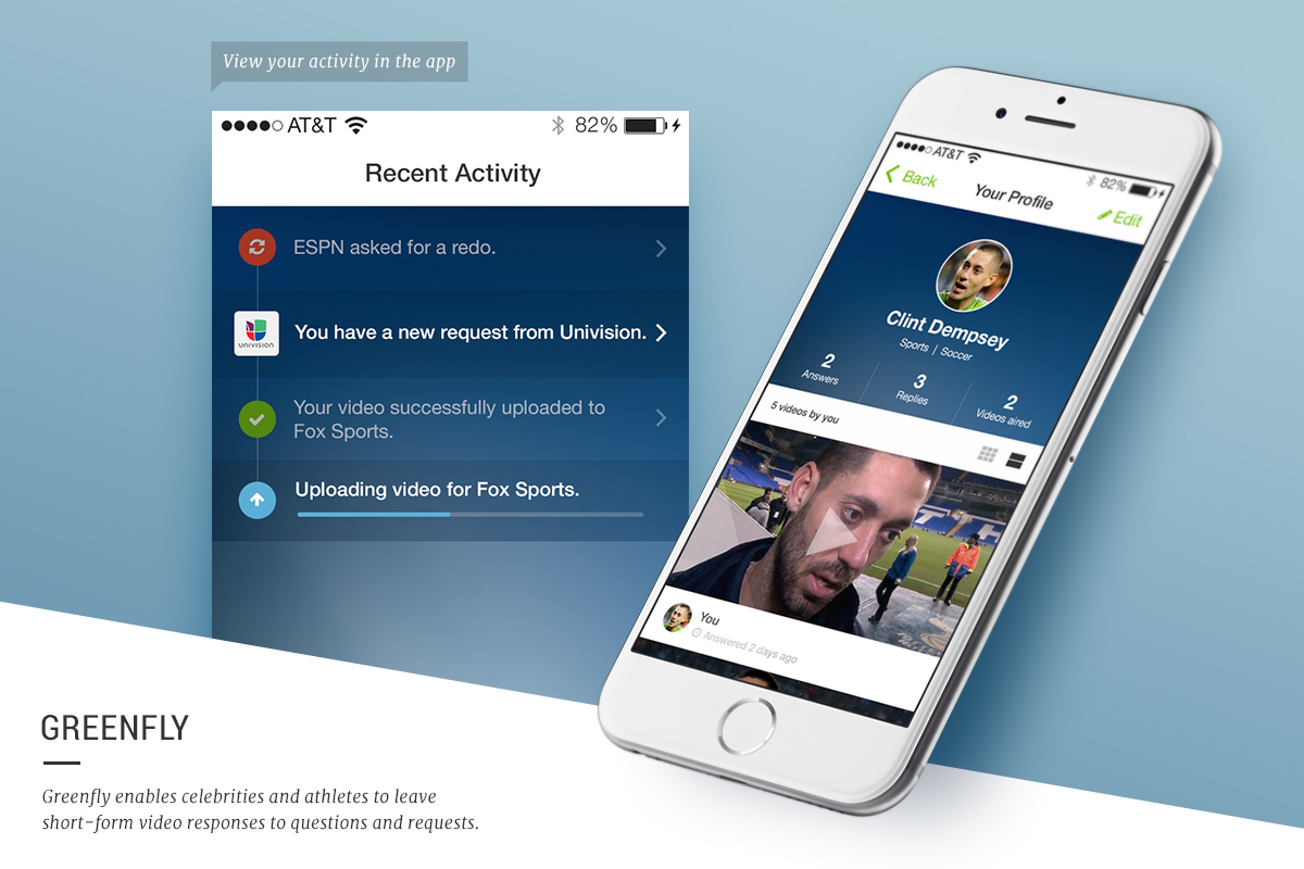 Greenfly is a question and answer video platform designed for athletes, celebrities, and other social influences. Users can create new video content via the iOS and Android apps and deliver that content to television broadcasts, websites, and apps.