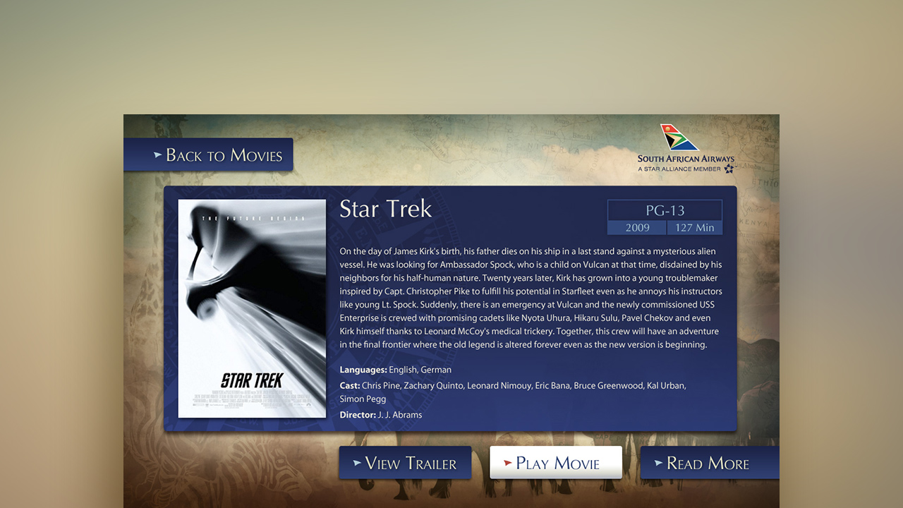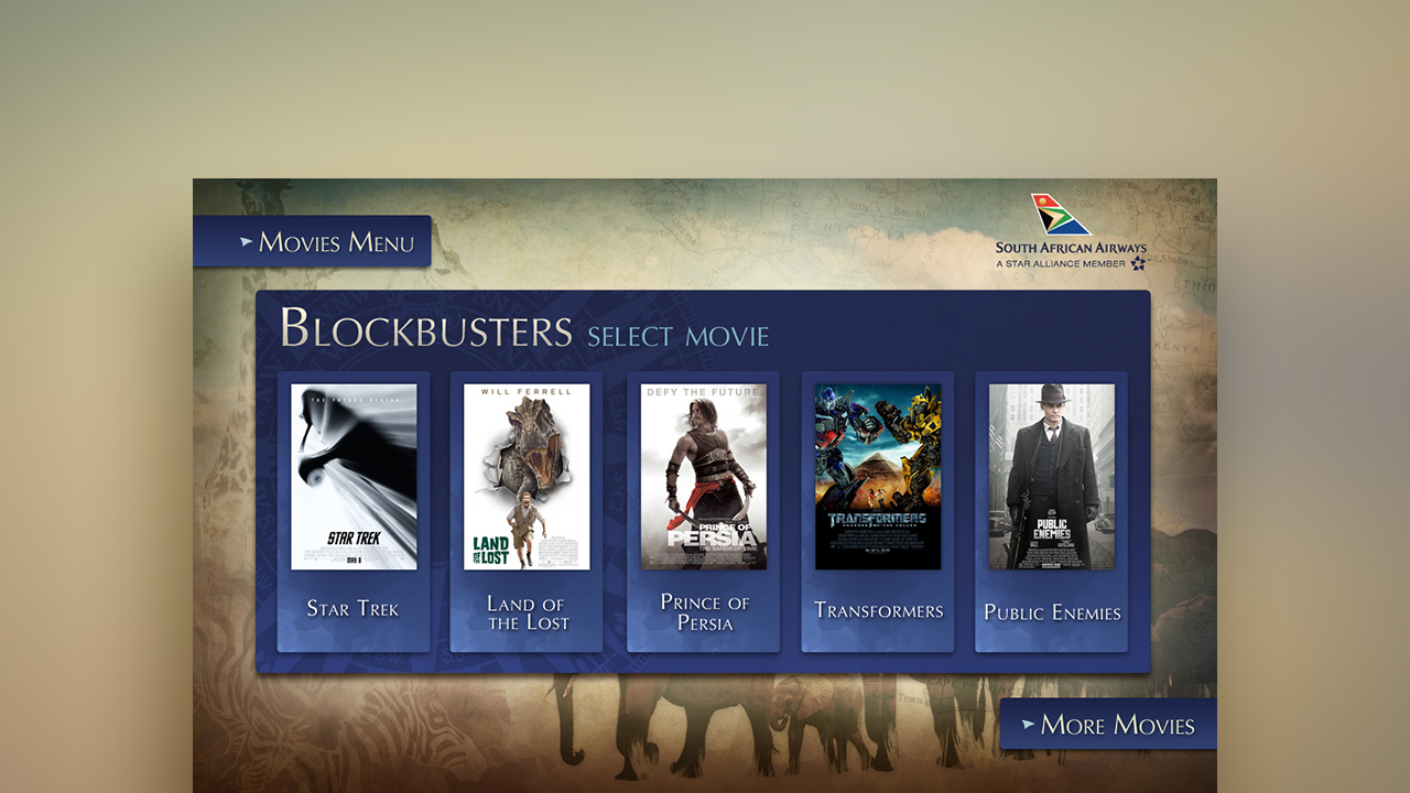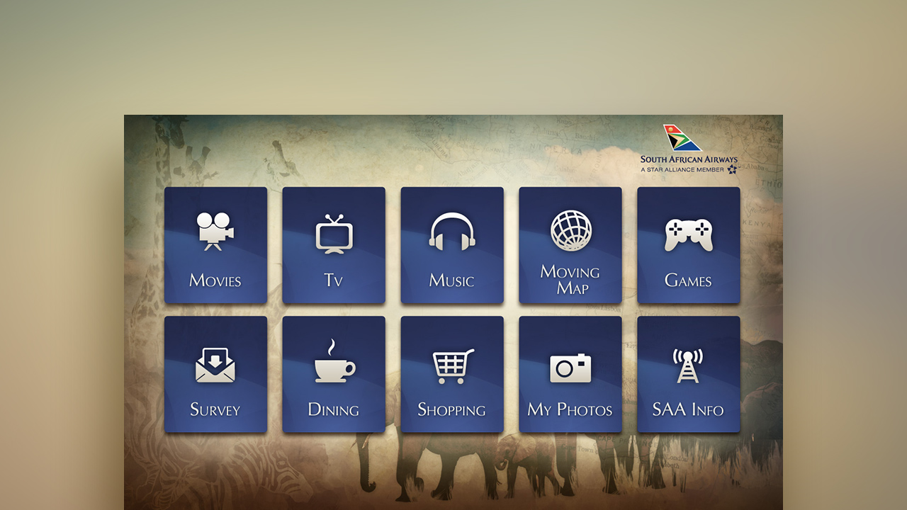 South African Airways worked with Thales Avionics and Fuse to design a new in-flight entertainment experience for their fleet. The system made use of a touch-screen and gave users various options for entertainment and other flight related utilities.